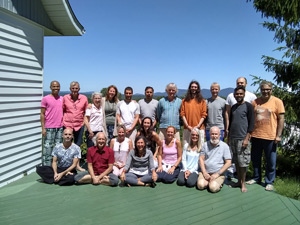 Kriya Hatha Yoga Teacher Training July 2019 with 14 participants, 4 instructors, cooking staff.
